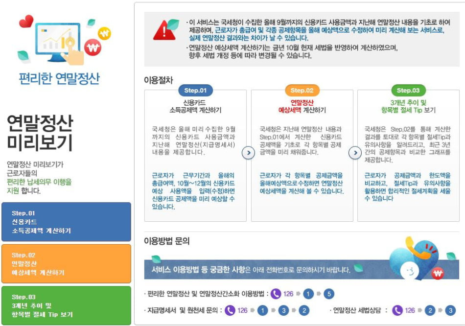 연말정산 미리보기 서비스는 간소화 서비스 시작되기 전 자신의 예상 세액공제액과